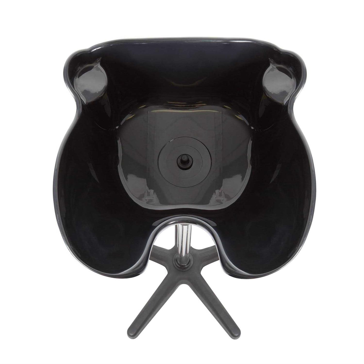 This lightweight, portable shampoo basin is constructed of durable ABS composite with a rolled edge for both strength and client comfort. The bowl has a large capacity, and measures 20 front to back, 19 across and 9-1/2 deep. It connects to the base with a sturdy steel bracket. The pedestal has a 1-1/2 diameter, chrome metal riser with five legs that form a 22 diameter base. Composite feet/bumpers are included on the bottom of the stand to protect floors from marks. The sink can be permanently installed in a salon, or can be carried to a client’s home for portable use (supply your own water source such as a water pitcher or hose, and basin may be drained into a bucket). A rubber plug stopper is included that fits the drain opening at the bottom of the basin, and a flexible, ribbed drain hose (60 long x 1-1/4 diameter) connects to the underside of the basin. Sink is adjustable to accommodate reclining or standard chairs. It tilts front or back and can be raised or lowered from 39 to 55 (measured from floor to top of basin when level). The neck rest dips to as low as 33 from the floor when titled, so this unit can be used with just about any chair. Includes basin with stand (minor assembly required), drain hose, drain hose clamp and instructions.