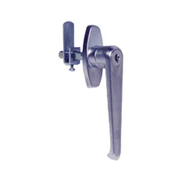 Works with Sandusky Lee storage cabinets. This steel handle swings to the right and works with any Sandusky Lee storage cabinet with any fixed shelves. Right Swing handle for 3 point locking doors used on all cabinets with adjustable shelves.