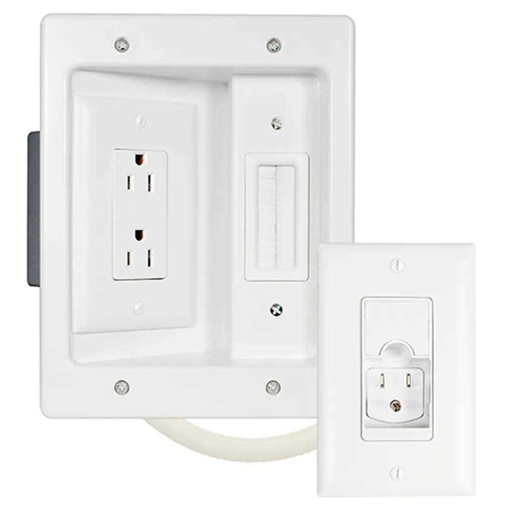 Connect your television to cable and electricity in seamless style with this Legrand flat panel recessed connection kit. In-wall storage takes control of cables and wires to eliminate tangles across your floor, and a white decorator plate provides a finished look. This Legrand flat panel recessed connection kit offers convenient access to the back of your TV while delivering power.
