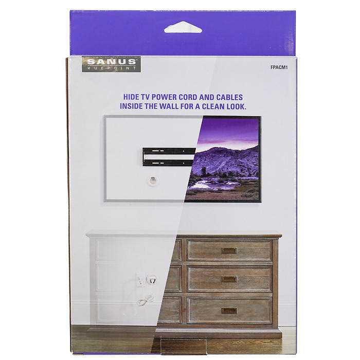 Tidy up the mess of cords in your entertainment area with help from this Sanus VuePoint in-wall TV power kit. Provide power behind a mounted TV, while keeping the cord hidden for a neat and finished install. The prewired design helps make this DIY setup fast and simple.