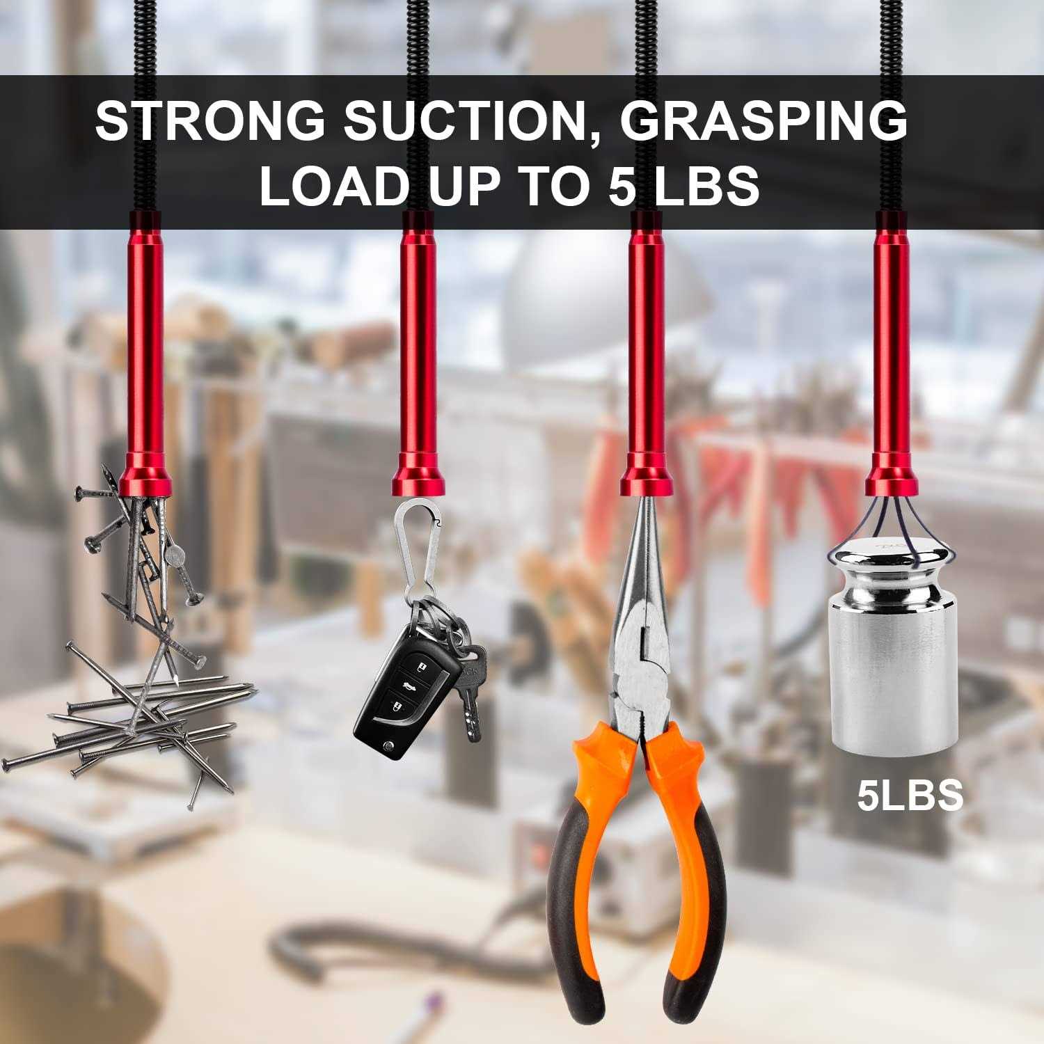 Narrow Space Pickups Saviour: SARDVISA grabber tool has an orientable tube body and four steel claws can be flexibly extended. The small-caliber design allows it to grab small parts such as screws and cables in various narrow spaces.. Wear-resisting Material: The grasping tool is made of high toughness alloy metal; The total length of the grabber is 24″, the diameter of the claw is 0.4″ when closed, and the diameter of the claw is 1.38″ when extended.. Magnet Design: The top of the grabber is equipped with a strong magnet, which can absorb metal objects through magnetic force in the process of use, realizing the dual functions of grabber and magnetic force absorption.. Widely Use: Our magnetic grabber can be used to pick up parts and tools dropped in the engine compartment during car repairs; Remove sewage sludge or hair in the household sink; Pick up earrings, necklaces, and rings that have fallen into the shower drain or sofa furniture gap..,,SARDVISA