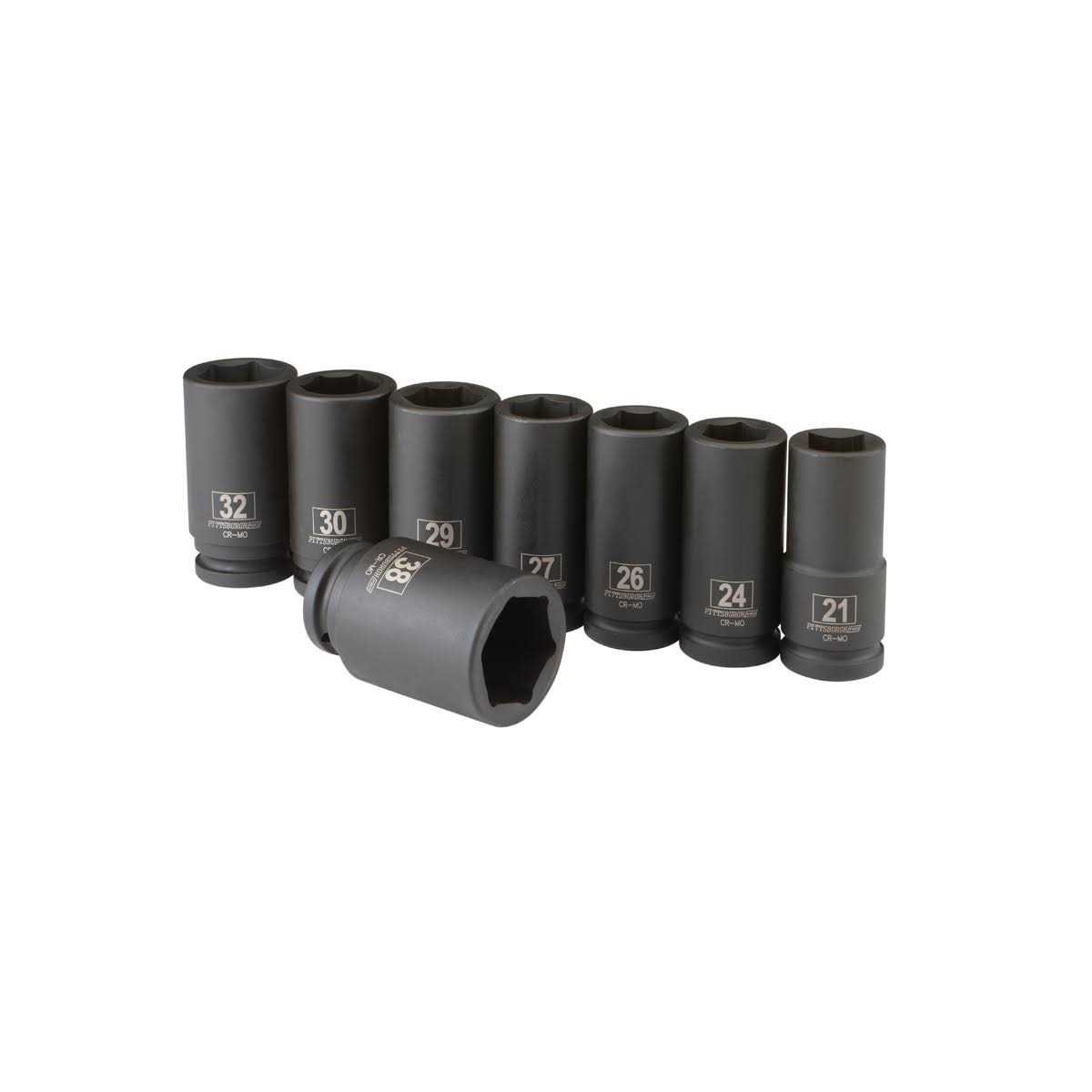 Use this impact deep socket set to reach fasteners on long studs. The chrome molybdenum construction and black phosphate coating make each of the sockets durable and rust-resistant.