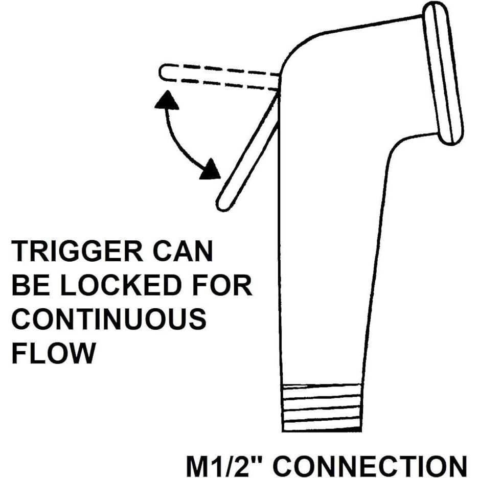 Sold as unit of measure: EAThese reliable plastic and chrome/brass sprayers have an on/off trigger or flip up for continuous water flow. 1-1/16″ Mounting hole. 3/8″ BSB thread.
