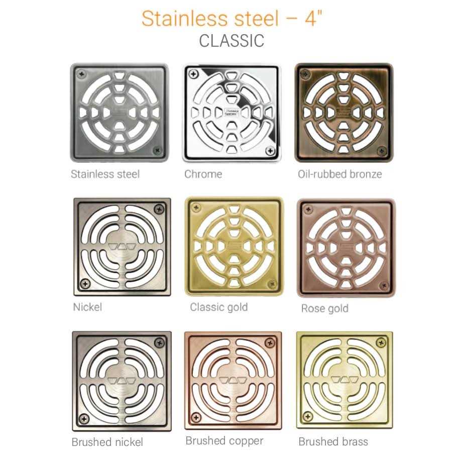 The Kerdi-Drain grate is designed for use with the Kerdi-Drain flange which is sold separate. The 4 in. square drain grate comes with a frame, height adjustment collar and lateral adjustment ring. The grate accommodates tiles 1/4 in. to 1-1/4 in. thick and allows for lateral and tilt adjustment. The Kerdi-Drain grate can be used in both commercial and residential applications.