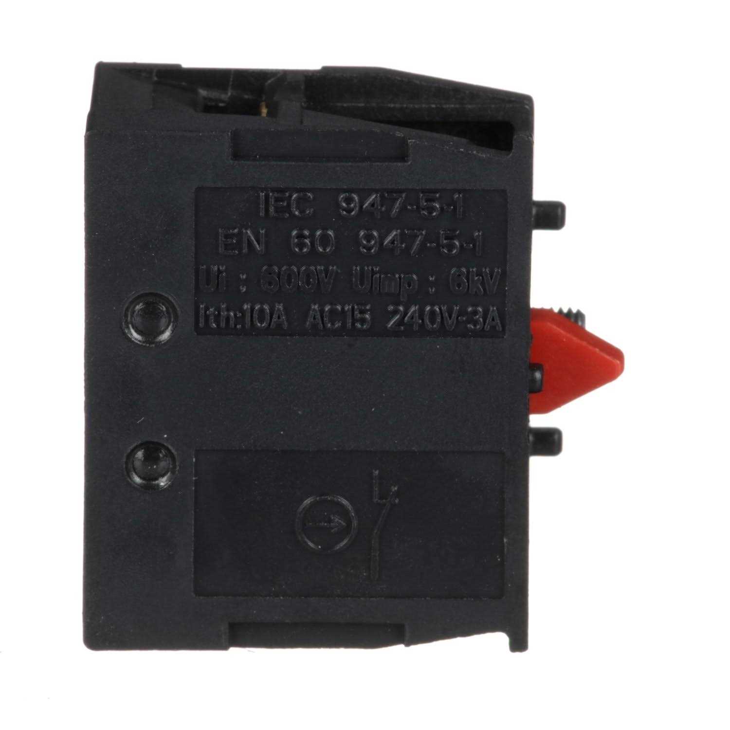 Block type = Contact block Series = XB2 Operating voltage = 600 V Connection type = screw mounting Rated current = 10 A Contact blocks XB2-B 22 mm range. ZB2BE series contact blocks. Versions available with 1 NO contact or 1 NC contact 1.5 mm² conductor.