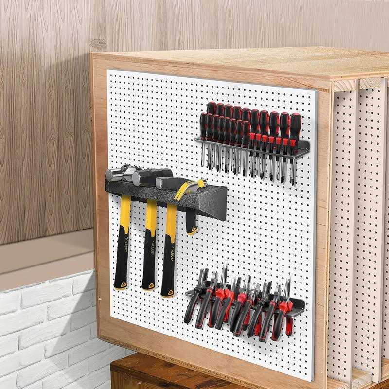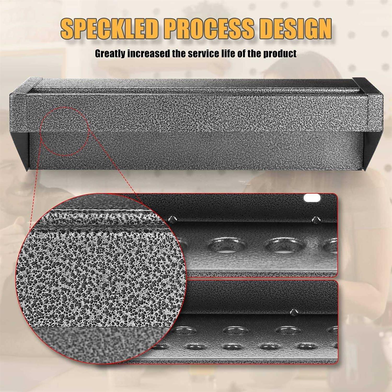 【SPACE SAVER】 Wall mounted design utilizes unused space to free up room on workbench or work area! (Package only includes the tool storage rack, not include the tools in the picture) 【BUILT TO LAST】 Compared with wooden tool storage racks, our metal tool storage racks are made with durable, powder-coated steel, will not rot and crack, rust-proof, and have a strong load-bearing capacity. The surface is treated with a spotted pattern, which is more beautiful. 【EASY TO INSTALL】 The package contains mounting accessories such as screws. You can easily mount the hand tools organizer on the ,concrete, brick wall, wooden cabinet, or any other place. Great for installing in garage, workshop, workbench. 【LARGE CAPACITY】 The wall-mounted tool rack set is qualified to hold up to 25pcs screwdrivers, 9 for pliers and 5 hammers. These 3 shelves can accommodate different sizes of screwdrivers, pliers and hammers. 【EASY TO MANAGEMENT】 Vertical and hollow design helps you easily organize,quickly take out and use. The wall-mounted tool racks are appropriate to organize your screwdrivers, pliers and hammers with minimal space.