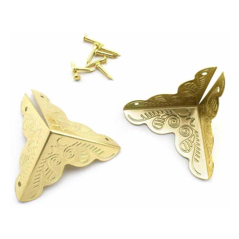 Corner Protector, Antique carved design that can protect the corners of the furniture and enhances the aesthetics. Total Size, 1″ x 1″ x 1″ (L * W * H), fits most box/case triangle edge. Metal Material, with bronze tone, exquisite workmanship, durable and long service life. Easy Installation, each corner guard has 4 mounting holes and comes with matching nails. Widely Use, the furniture corners are designed to protect your storage Box, Jewelry Case, Wooden Chest, Table, Cabinet etc. frome being damaged and make them durable and beautiful.