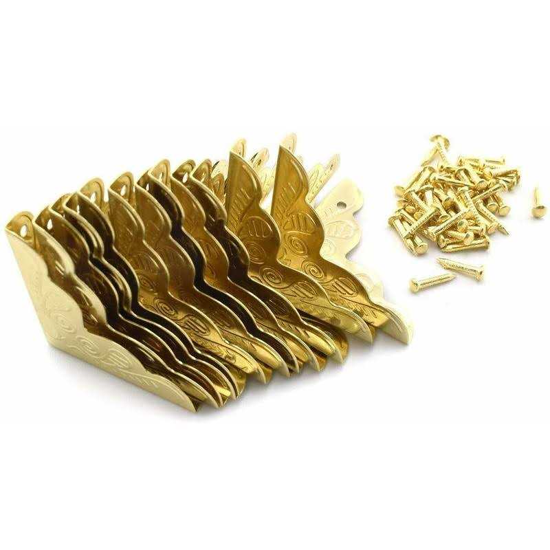 SDTC Tech 12 Pack Furniture Corner Protector 1 x 1 Antique Triangle Edge Decorative Metal Corner Guard for Storage Box Jewelry Case Cabinet