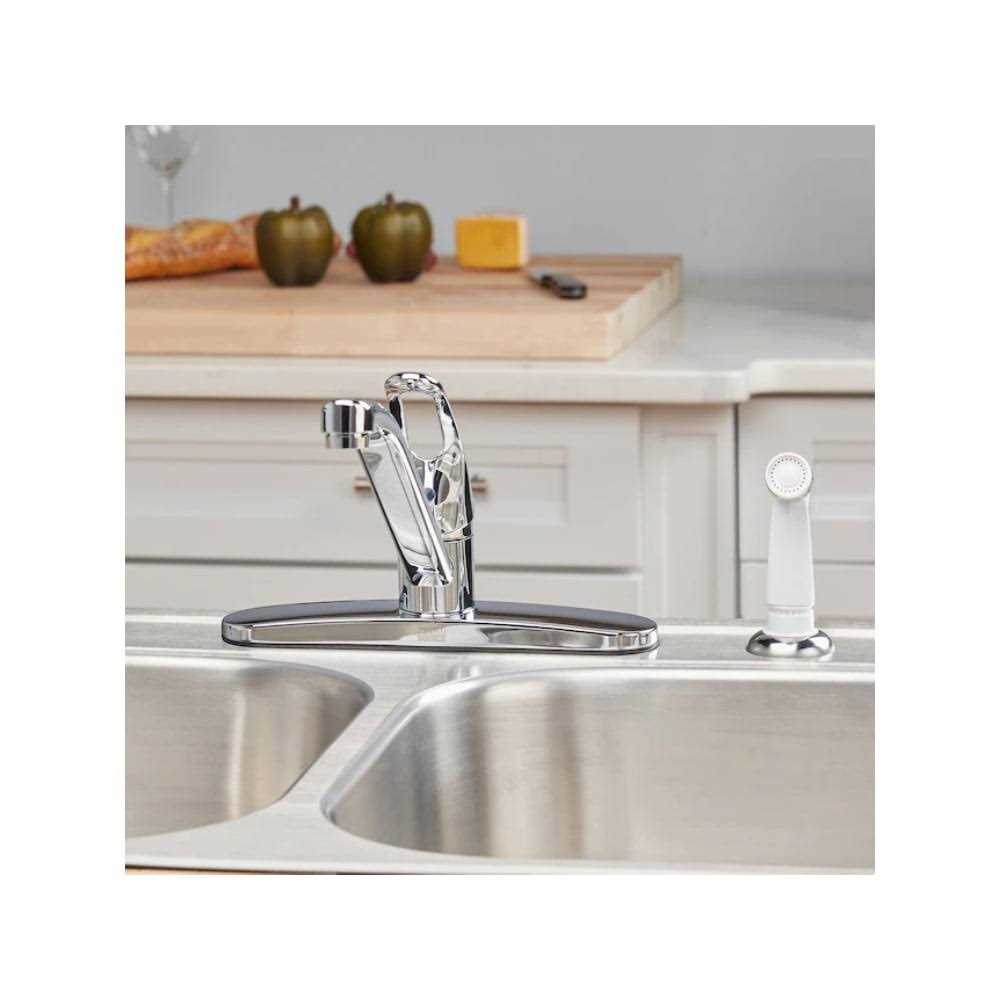 Seasons Anchor Point Single Handle Kitchen Faucet, Less Spray, With Deck-plate, Chrome, 1.8gpm. Deck mounted, faucet requires 3-hole sink with 8 in. on center. Single-handle design for precise water control.