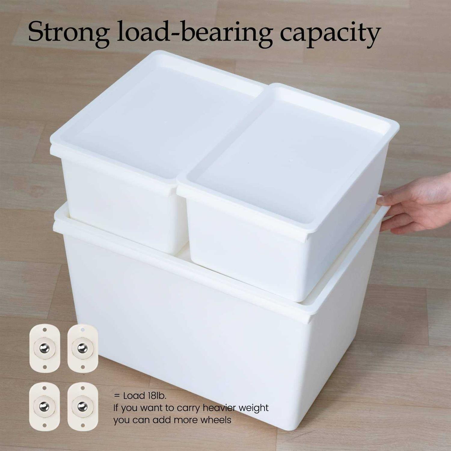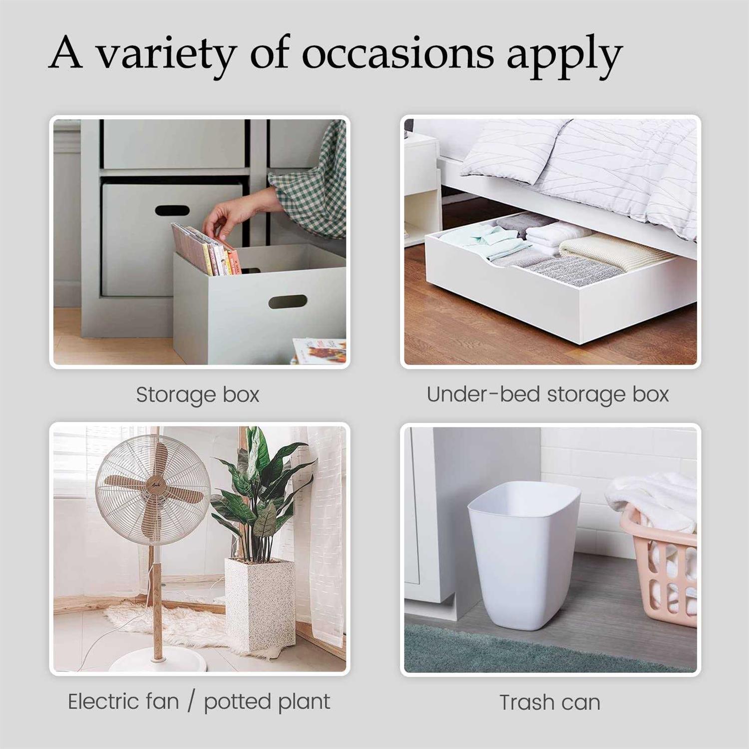 【360° Free Rotation】 You just need to paste the universal wheel at the bottom of the box, then this heavy box can easily and steadily move in any direction, save time and effort. 【Weight Capacity】 A single wheel can bear with a load capacity of 2KG. Four wheels together provide a maximum load capacity of 8KG. You can also add more wheels. 【Easy Installation】 You just need to use the included self-adhesive tape to stick the casters to the bottom of the object. No drilling required, no damage to objects. It is recommended to wait 24 hours, it will stick more firmly. 【Wide Applicability】 Casters are suitable for trash cans, storage bins, small furniture, laptop, cricut machine or other objects that need to move more easily. 【Quality & Safety】 Mini caster wheel made of ABS and stainless steel material, ensure it is robust, quiet and smooth, easy to roll and non-toxic and odorless. 【Please note】Since the bearing is made of metal, it may rust if placed in a humid location and cause the performance of the product to decrease. Please pay attention to cleaning up the water stains around the product in time and keeping it dry.