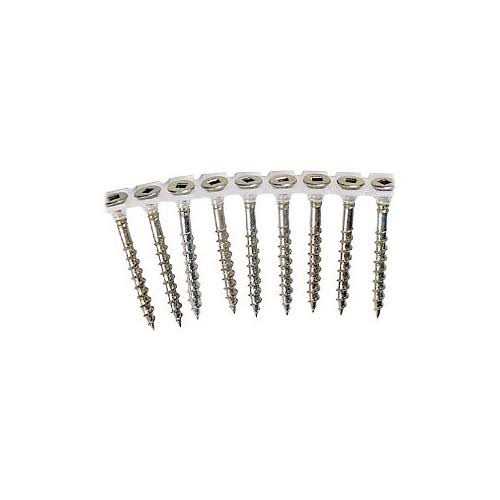 Collated screws mean increased productivity. Like their nail and staple counterparts Senco collated screws offer professional installers a number of benefits not the least of which is an overall increase in job productivity. This is due in part to the fact that collated systems reduce the amount of time spent loading and installing loose fasteners eliminating the need for feeding one fastener at a time. Flat headed screw with sharp pointSquare drive typeCoarse 2/3 threading.