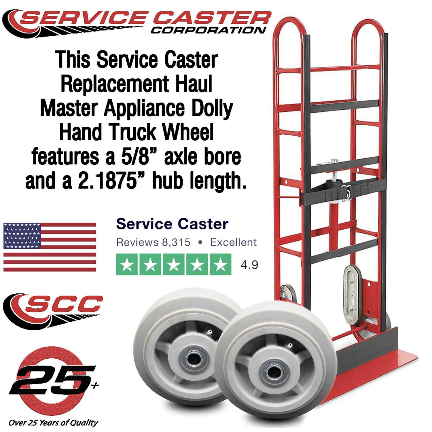 Service Caster – 6 x 2 in Replacement Wheels Only for Haul Master Appliance Dolly Hand Truck 9913304-Thermoplastic Rubber Flat Tread Wheels with 5/8