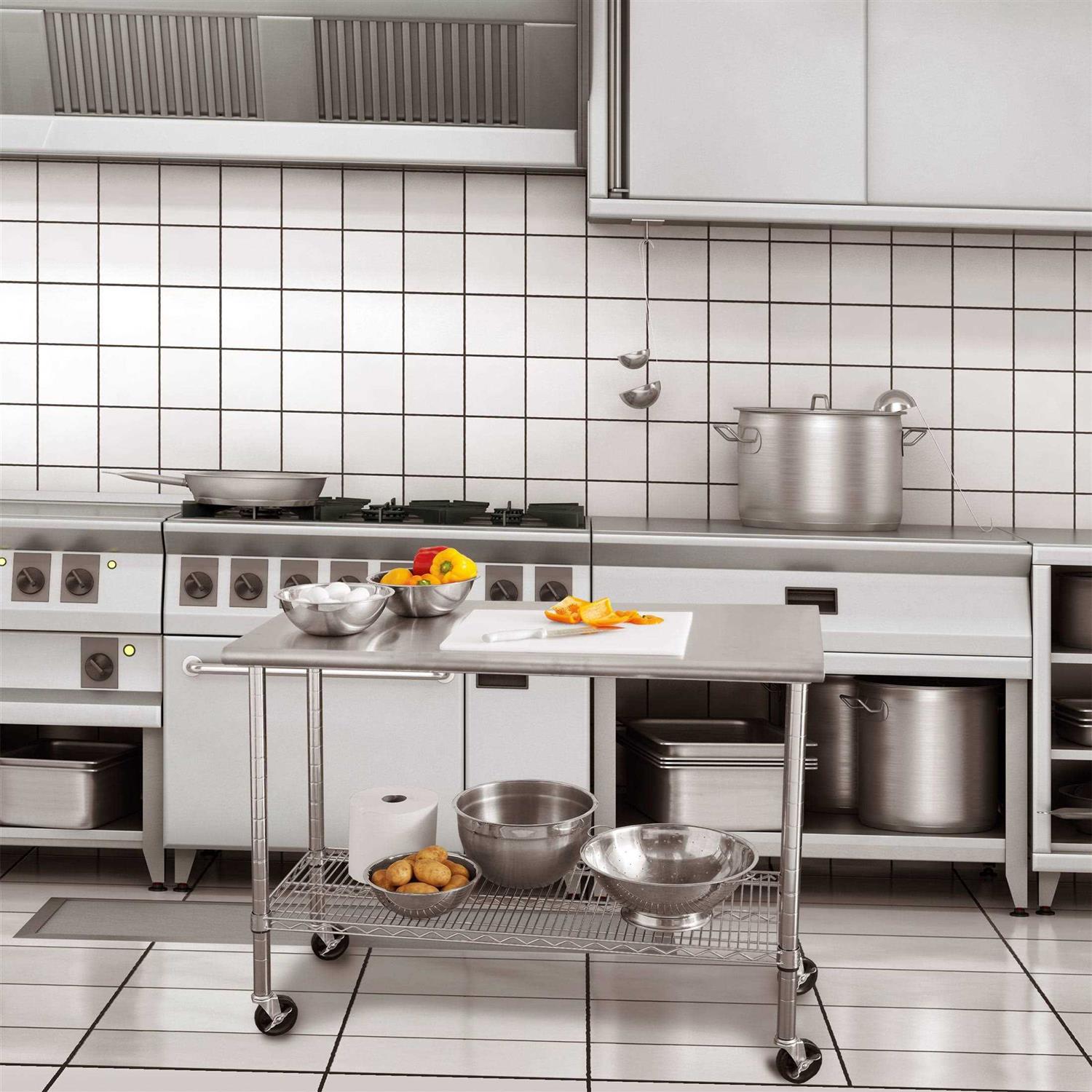 Looking for a safe, durable and heavy-duty work surface? Then this NSF Certified Stainless Steel (443) Top Worktable is just for you! This versatile and multi-functional Seville Classics Commercial Stainless Steel Top Worktable is constructed from industrial-strength chrome plated steel with a sturdy easy to clean 1.5 inch thick bullnose rounded edged stainless steel (#443) top. The ventilated steel wire bottom shelf can be adjusted at one-inch intervals. Easy assemble with no tools required. The table measures 24 inch deep by 49.5 inch wide by 35 inch high. This sleek and modern table is great for kitchens, restaurants, laboratories, warehouses, mail rooms, work centers, etc.