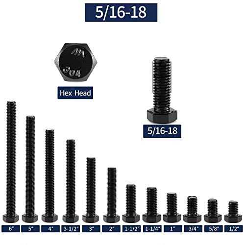 5/16-18 x 3/4″ Hex Head Screw Bolt, 20pcs 18-8 (304) Stainless Steel, Fully Threaded,Black Oxide by Sg TZH