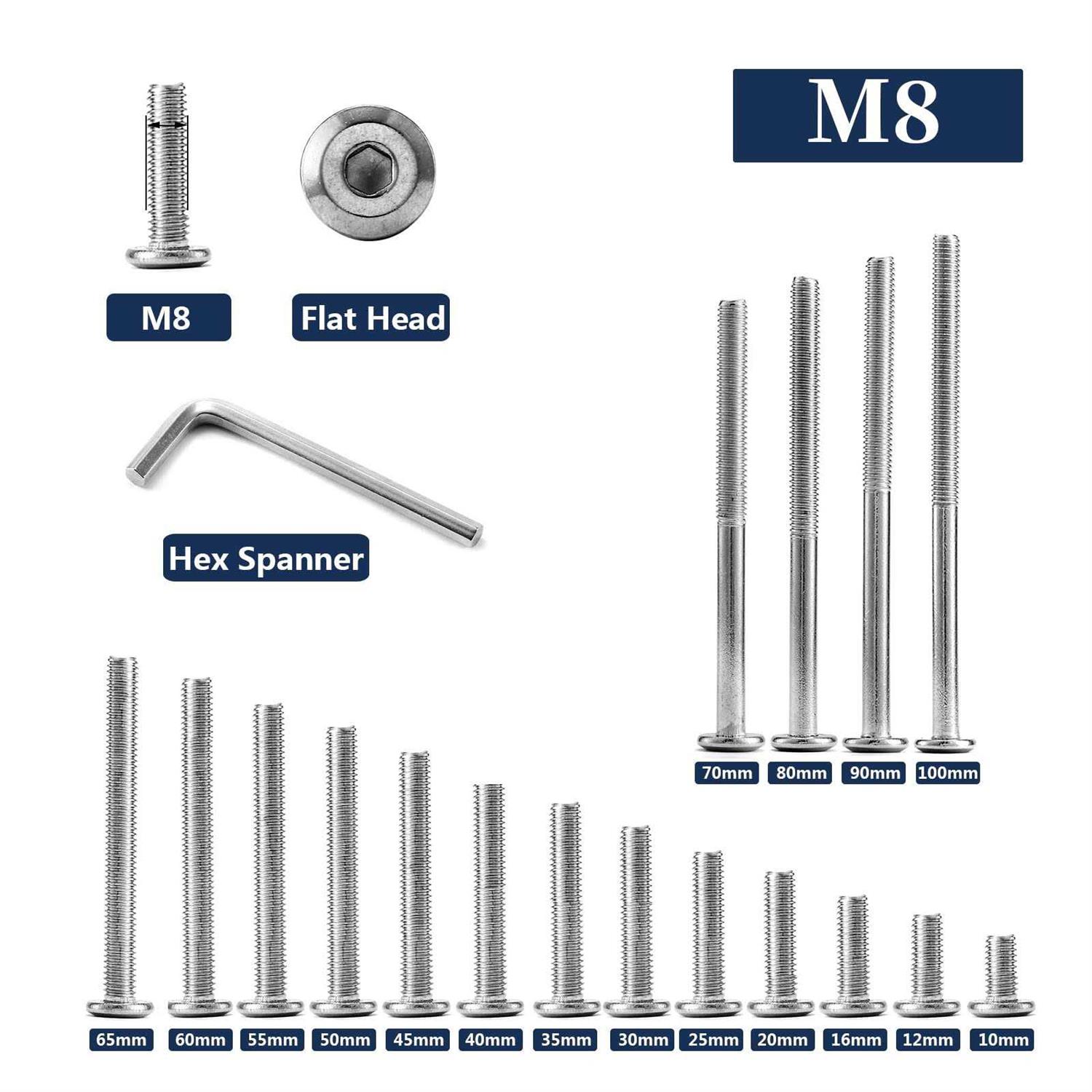 M8 x 35mm 10pcs Flat Head Hex Socket Cap Screws Bolts, 304 Stainless Steel 18-8, Full Thread by Sg TZH (with Hex Spanner)