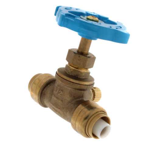 CUT. DONE. The SharkBite push-to-connect stop valve is available in 1/2′′ and 3/4′′. The push-fit connections are compatible with any combination of copper, PEX, CPVC, or PE-RT pipes and require no solder, glue, unions, or additional tools to connect. This multi turn valve allows for the regulation for water flow and features a durable forged body for strength. It also includes an integrated drain vent for easy cold-weather maintenance and protection against freezing. SharkBite is a provider of plumbing and water control systems for domestic, commercial, and industrial applications. As the world leader and hallmark of push-to-connect plumbing solutions, our goal is to continue innovating the plumbing trade with new solutions that improve efficiency and performance. Trusted by plumbing professionals, SharkBite manufactures a wide range of plumbing fittings, water control valves and PEX pipe, making it the only total plumbing solution from meter to fixture.