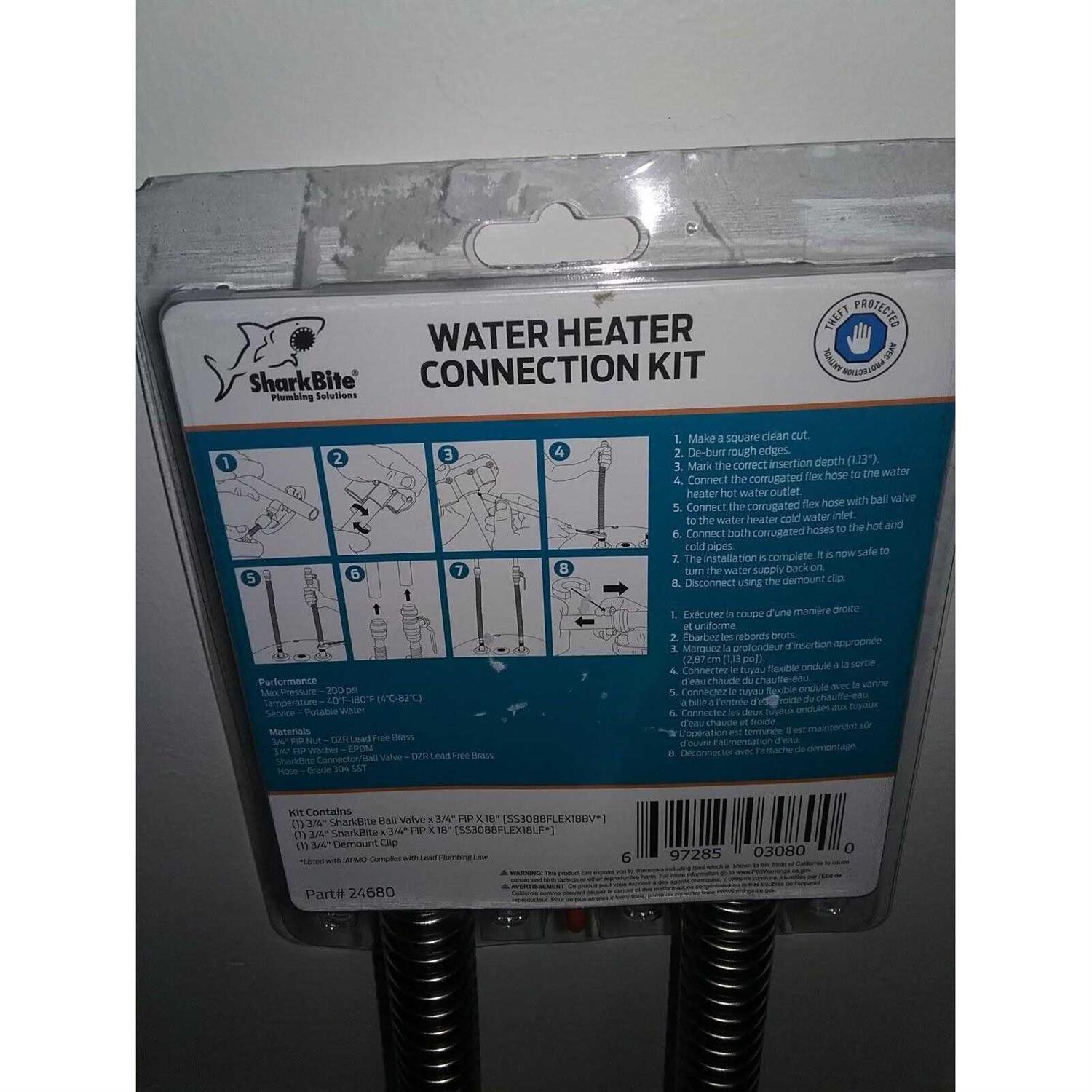 Connect your water heater in seconds with the SharkBite Water Heater Installation Kit. This all-inclusive kit contains two 18 in. Flexible Water Heater Connector Hoses for hassle free pipe connection with push-to-connect technology. One of the hoses is integrated with a ball valve for easy water supply shut off. There are no tools, unions or glue required for installation, making any water heater project a breeze. Recommended to be installed with the Cash Acme Heat Guard Tank Booster.