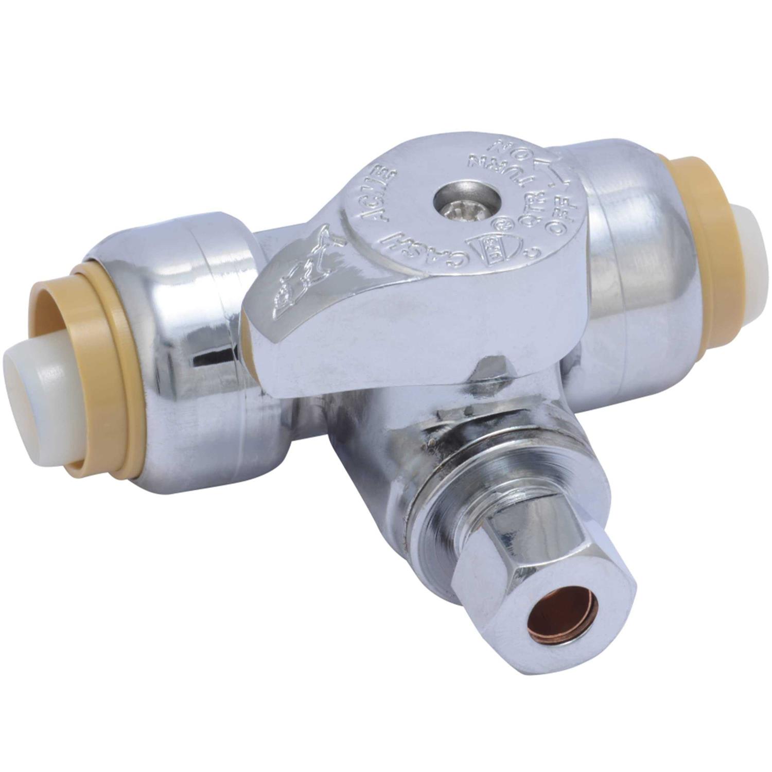 The SharkBite tee stop combines a SharkBite push-to-connect tee with a 1/4 in compression line and a quarter turn valve for easy on/off control of the supply line. This product is particularly useful for adding supply lines to fixtures such as dishwashers, humidifiers and ice makers. The Tee Stop also commonly serves as an alternative to a saddle valve. It can be used on Copper, PEX, CPVC or PE-RT tubing. The valve is easily rotated after assembly for easy installation, even in tight spaces.