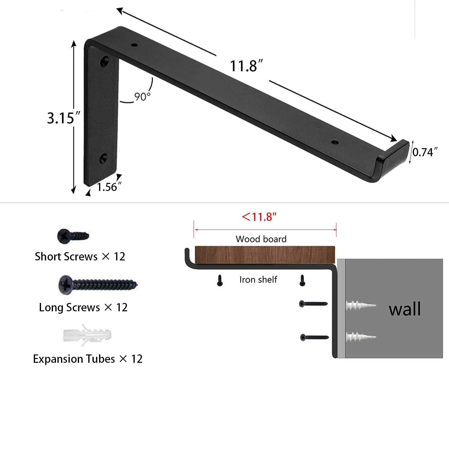 Wide Application: The iron shelf brackets match a variety of home decor. Perfect for your shelving wall mount for storing or displaying in kitchen, bedroom, bathroom, study room, living room, laundry room, garage, office and more.. It is an essential accessory for your DIY project, then you will get a perfect and heavy duty storage rack. You can apply them to a variety of wood shelving including bookshelf, kitchen shelf, bathroom shelf, bedroom shelf, accessories shelf, tool shelf and more.. Fits Common Lumber Boards: These rustic floating shelves are designed to perfectly fit nominal size 1″ x 12″ and 2″ x 12″ dimensional lumber with actual 11.8″ width.. Heavy Duty: These open shelf brackets are made of steel coated with black finish with strong hardness which is durable, sturdy and rust-proof. You can install these brackets for wood floating shelves when use for more heavy duty load.. Package Includes: Each one set includes 6 shelf brackets and all necessary hardware. (Wood board is not included in the set)..,,Eistaken