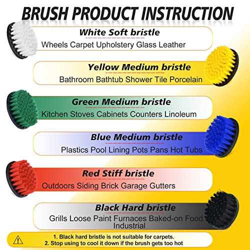 EASY TO INSTALL Our drill brush kit quipped with a quarter inch quick change shaft so you can easily swap around brushes to make sure you always have the correct size for the job. WIDDLY USE Use the larger 5 and 4 inch brushes to clean tonneau covers, boat covers, large sections of carpet in vans or RVs.The 2-inch brush can clean detail like Vinyl, LeatherFabric seats and upholstery. The Long Round Brush is suitable for curved surface like sink, toilet edge, shower.