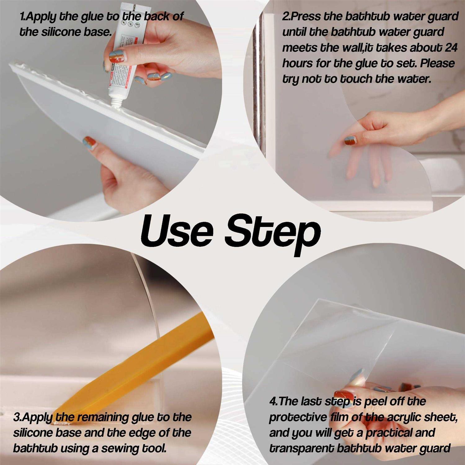 Shineligee 2 Pack Updated Shower Splash Guard, Large Splash Guards for Bathtub, Consists of Silicone Base and Acrylic Plate, Keep Water in Shower or