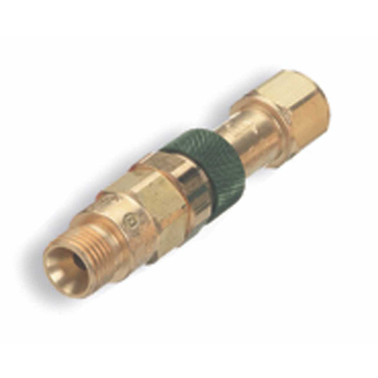 Brass construction provides long service life. Non-interchangeable oxygen and fuel gas connectors. Instant closure on reverse flow check valves. Spring-loaded locking mechanism responds to fingertip action and achieves a gas-tight connection. Double seal socket connection on second seal.
