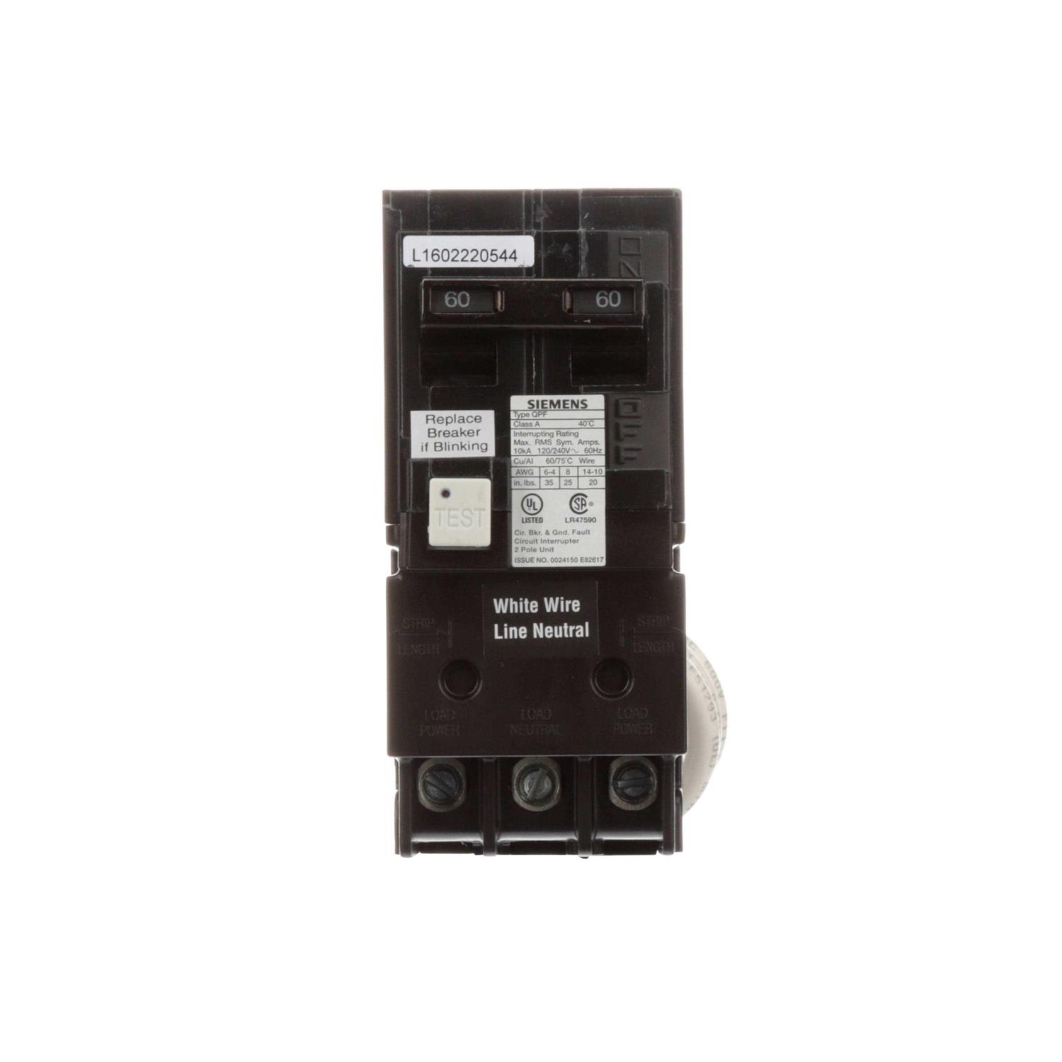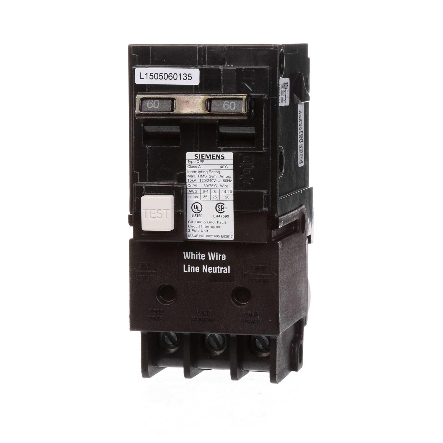 Siemens 60 Amp Double Pole Type QPF GFCI Circuit Breaker RBPU