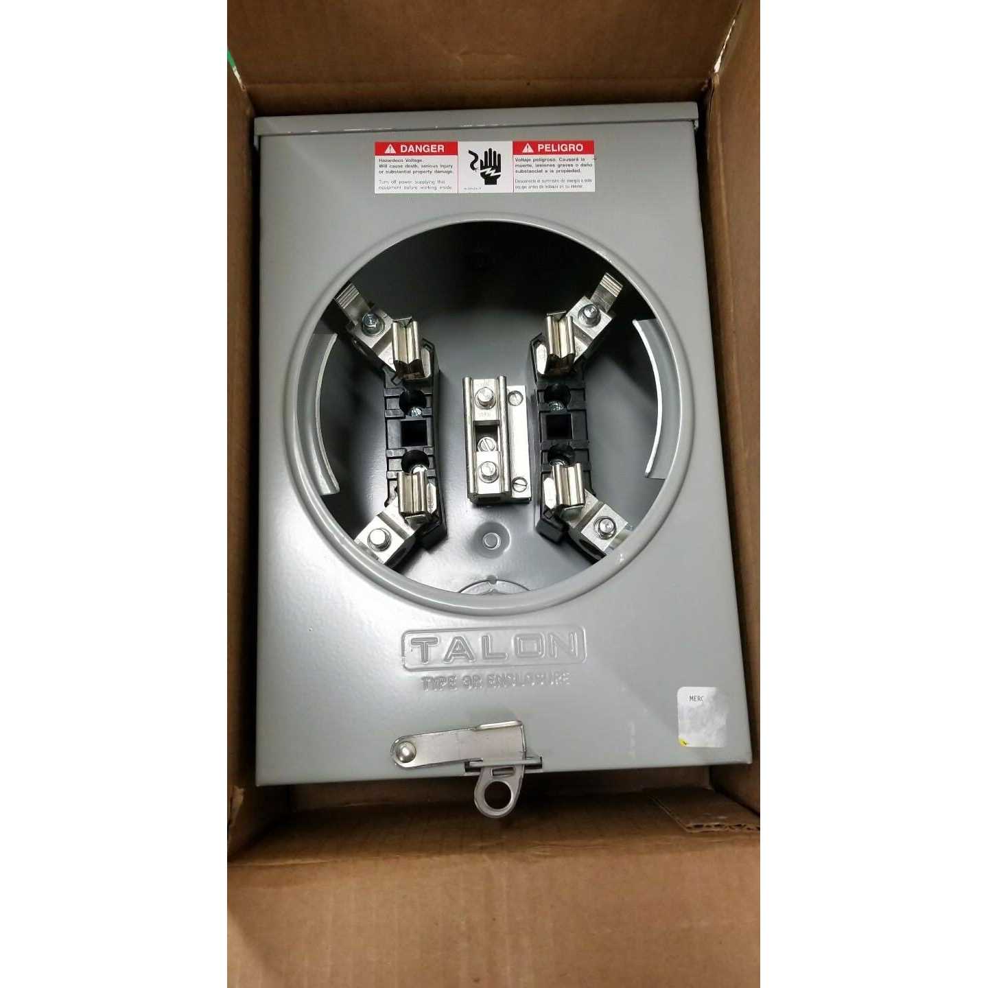 Galvanized steel enclosure. Single phase, 3-wire, four jaw, 600 V maximum. Jaws fabricated from high conductivity, tin-plated, copper alloy. Insulating jaw support blocks of high impact, non-tracking thermoset polyester. Safety guides reduce chances of accidental contact and aligns meter in sock. Uses RX style hub (not included). Includes two ground lugs. Swing switches are stainless steel. Provision for 5th jaw. UL listed.