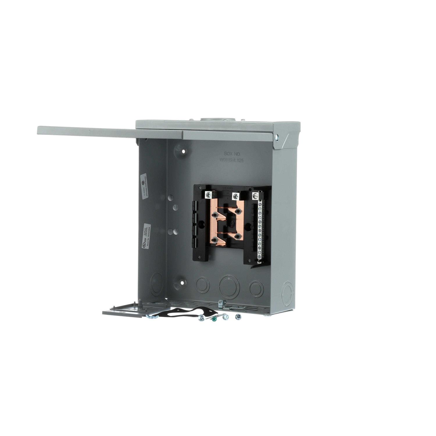 Code-gauge steel enclosure. 10,000 AIR. HS-hubs sold separately. One piece copper bus bar, 100% circuit breaker twist outs. Positive load side circuit breaker hook rail. Suitable for use as service equipment when a main breaker (125 A maximum) is back-fed in a branch position and used with main breaker retainer clip No MBR1. When used as service equipment, any unused neutral position may be used for equipment grounding. Rotate entire device 180 deg for bottom feed. Gray enamel finish. UL listed, complies fully with NEC and UL requirements for Class CTL. 12-1/8 in x 14-3/4 in x 4-1/4 in.