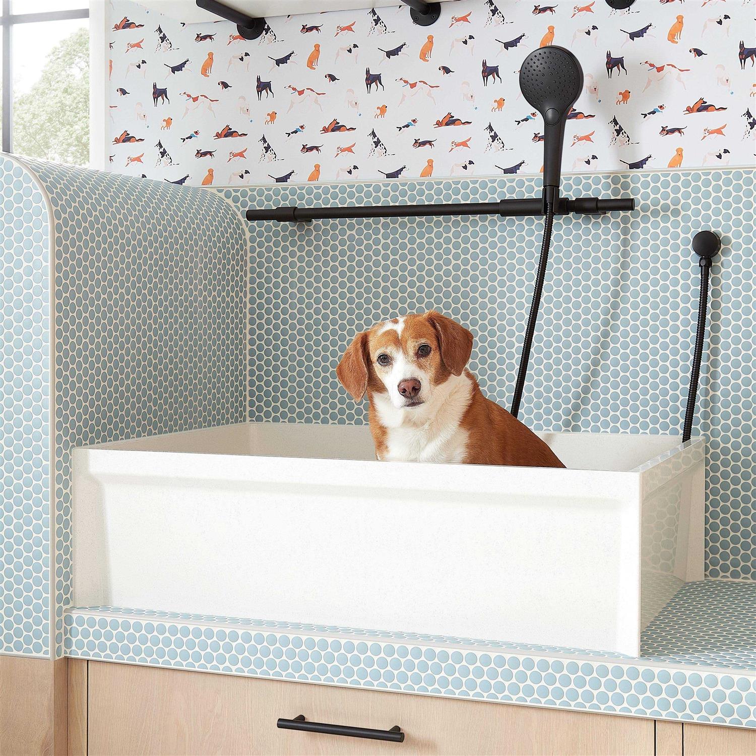 To make this process easier than ever, the Linwald sits perfectly in utility rooms, offering a minimalist, durable design that ties in with all styles. At 36″ in size, your pup will have plenty of space to sit or stand comfortably. Surround with tile to waterproof the area and pair with your favorite hand shower to complete a fully functional yet eye-catching look. Stainless steel drain is included.