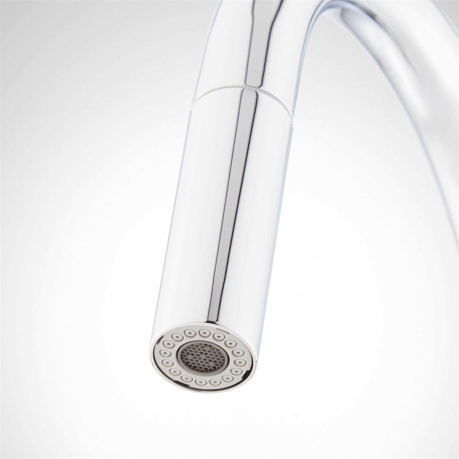 - Pullout spray head with dual spray functionality with aerated spray and stream.