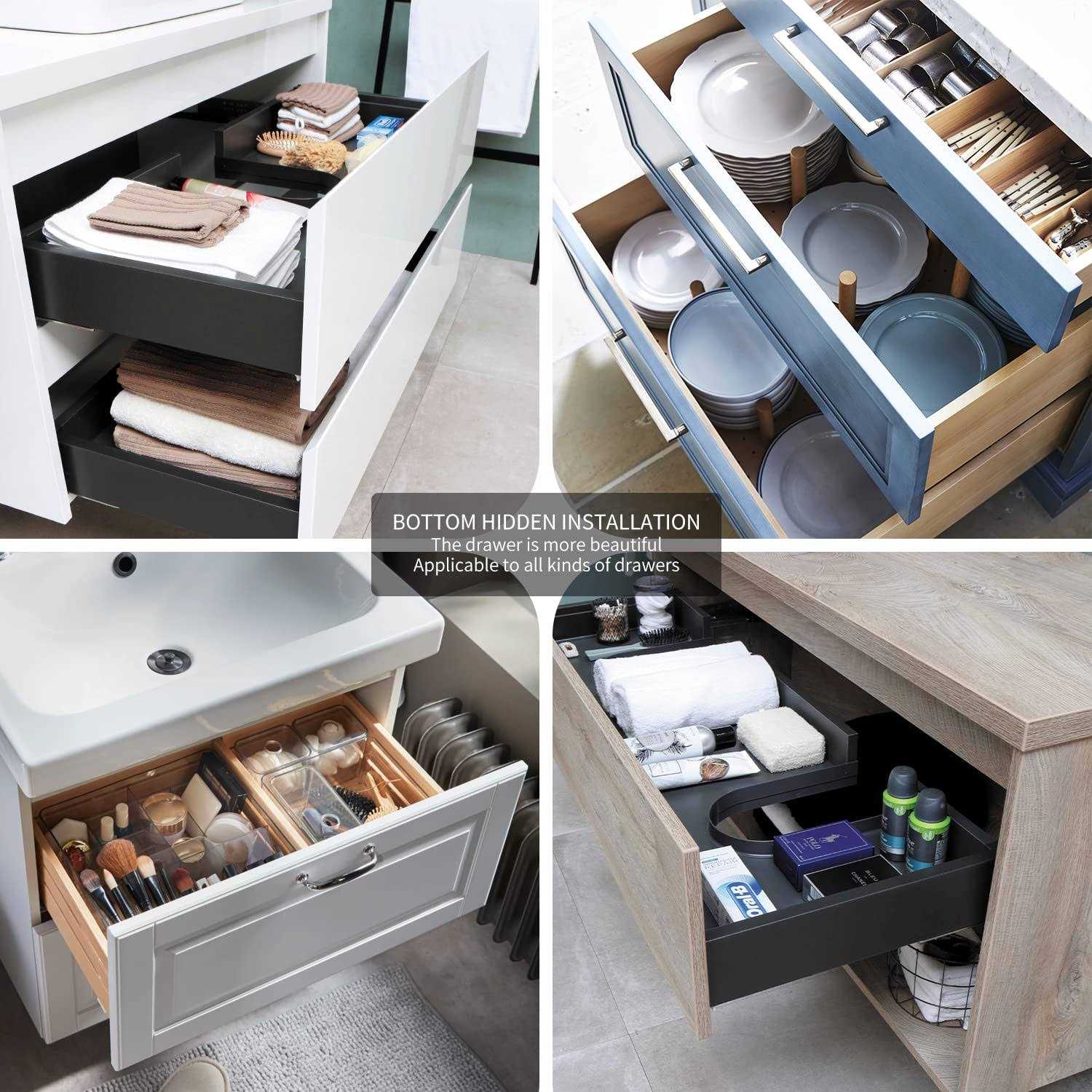 Soft-Close: featuring soft-close functionality to ensure the drawer close softly and silently. Hidden bottom installation:Make your drawer making it cleaner and more beautiful,the slides hide away with ease,Mounting screws included. Soft-Close: featuring soft-close functionality to ensure the drawer close softly and silently. Hidden bottom installation:Make your drawer making it cleaner and more beautiful,the slides hide away with ease,Mounting screws included.