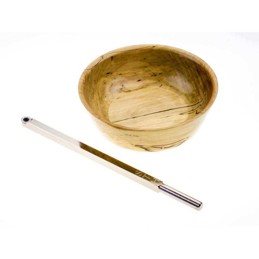 Technical details: Carbide cutter is 9/16 diameter, flat top cutter. Overall tool length: 12″. Tool Shaft: Solid steel 1/2″ square. Beautifully nickel plated. Handle tang: 1⁄2″ diameter x 21⁄2″ length. T20 Torx star tip wrench included. The introduction of carbide tipped wood turning tools has greatly simplified wood turning. The Simple Turner & Hollower is the tool of choice to be used after a block has been roughed into a cylinder. Full size.