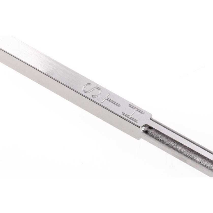 • Features a square shaft so the flat back can be kept flat on the tool rest and level with the floor (not possible with round shaft tools).