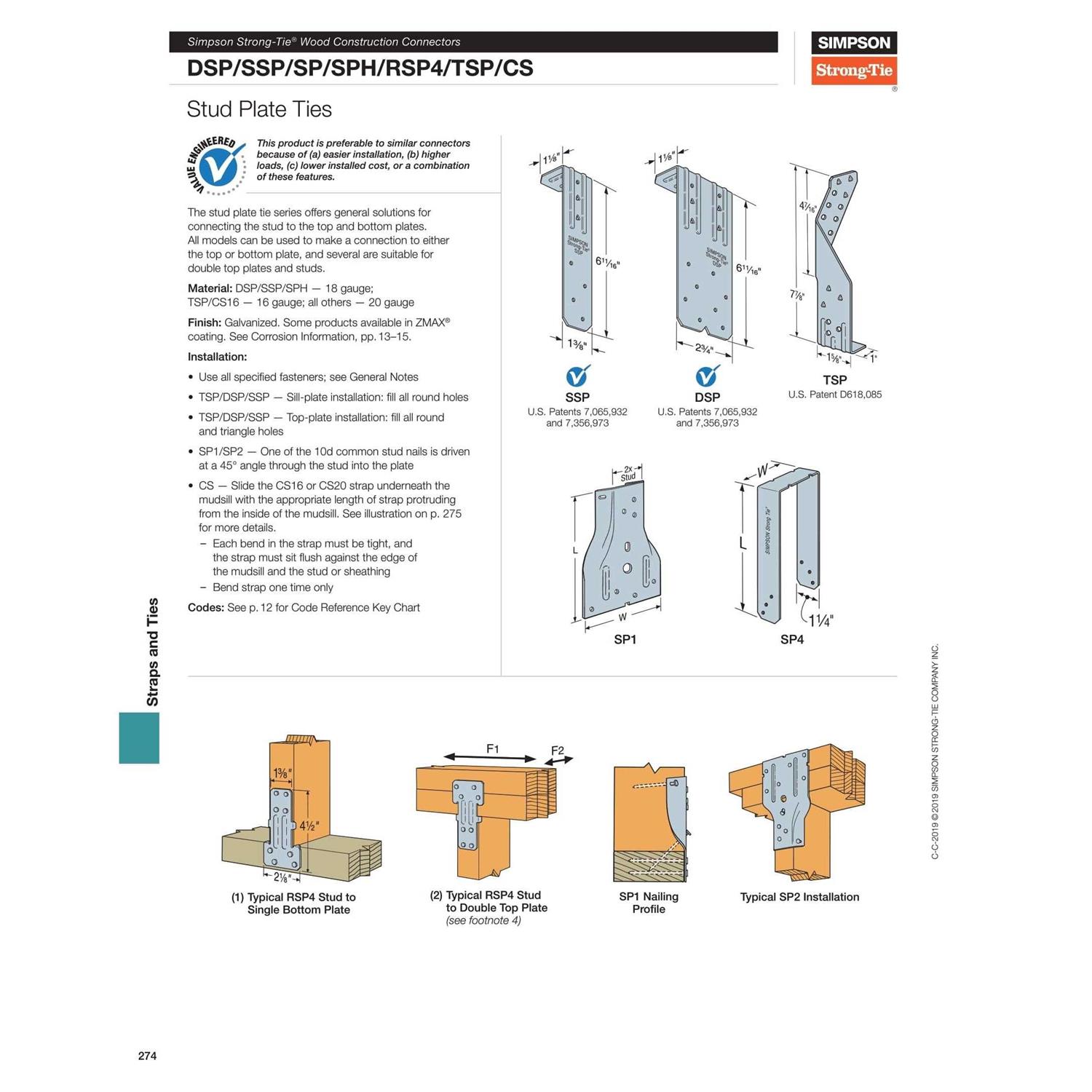 The SP stud plate tie is a plate-to-stud connection providing uplift resistance. Ideal for connecting studs plates at a ninety degree angle to provide additional support. Stud plate ties are suitable for windy environments as the reinforced stud plates are protected from being pulled apart by high winds from hurricanes, tornados, etc. This unit attaches the stud to double top or double bottom plates stud for a low profile finish.