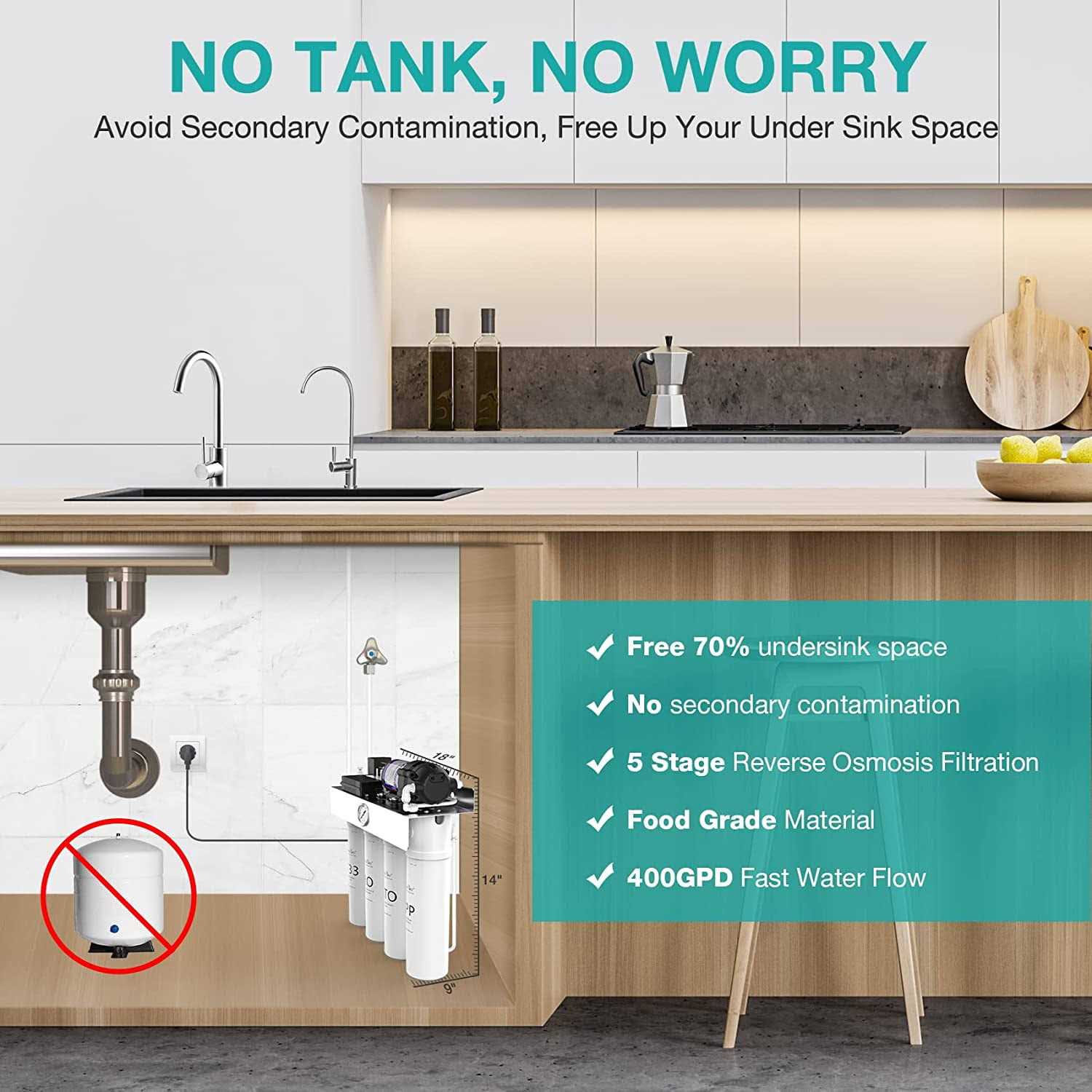 - 400 GPD High Flow Rate & Tankless RO Design.