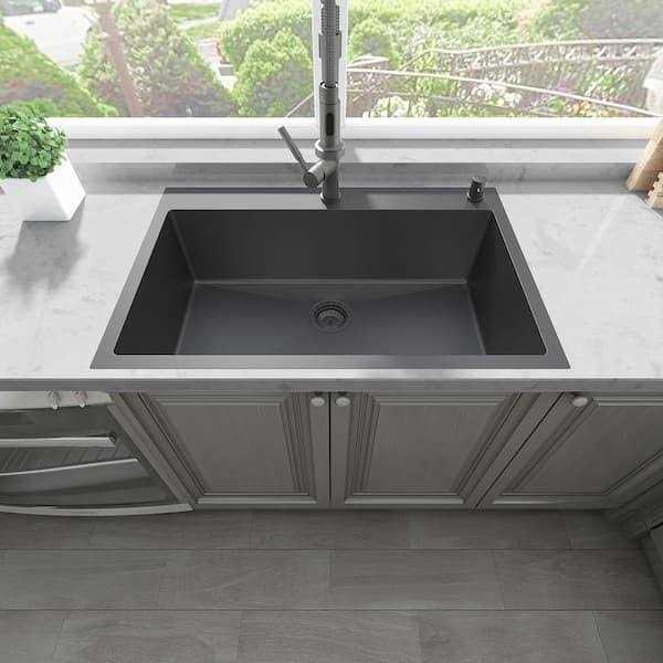 Sinber 33 in. Drop-In Single Bowl 18-Gauge Black 304 Stainless Steel Workstation Kitchen Sink