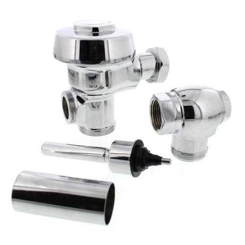 This chrome-plated Sloan Royal closet flush valve includes wall and spud flanges. It also comes with a 1 1/2″ top spud coupling and a one-inch IPS screwdriver Bak-Check angle stop. The valve provides 3.5 GPF on closets and 1.5 GPF on urinals. Each top spud coupling for urinal flush valves measures 3/4″.
