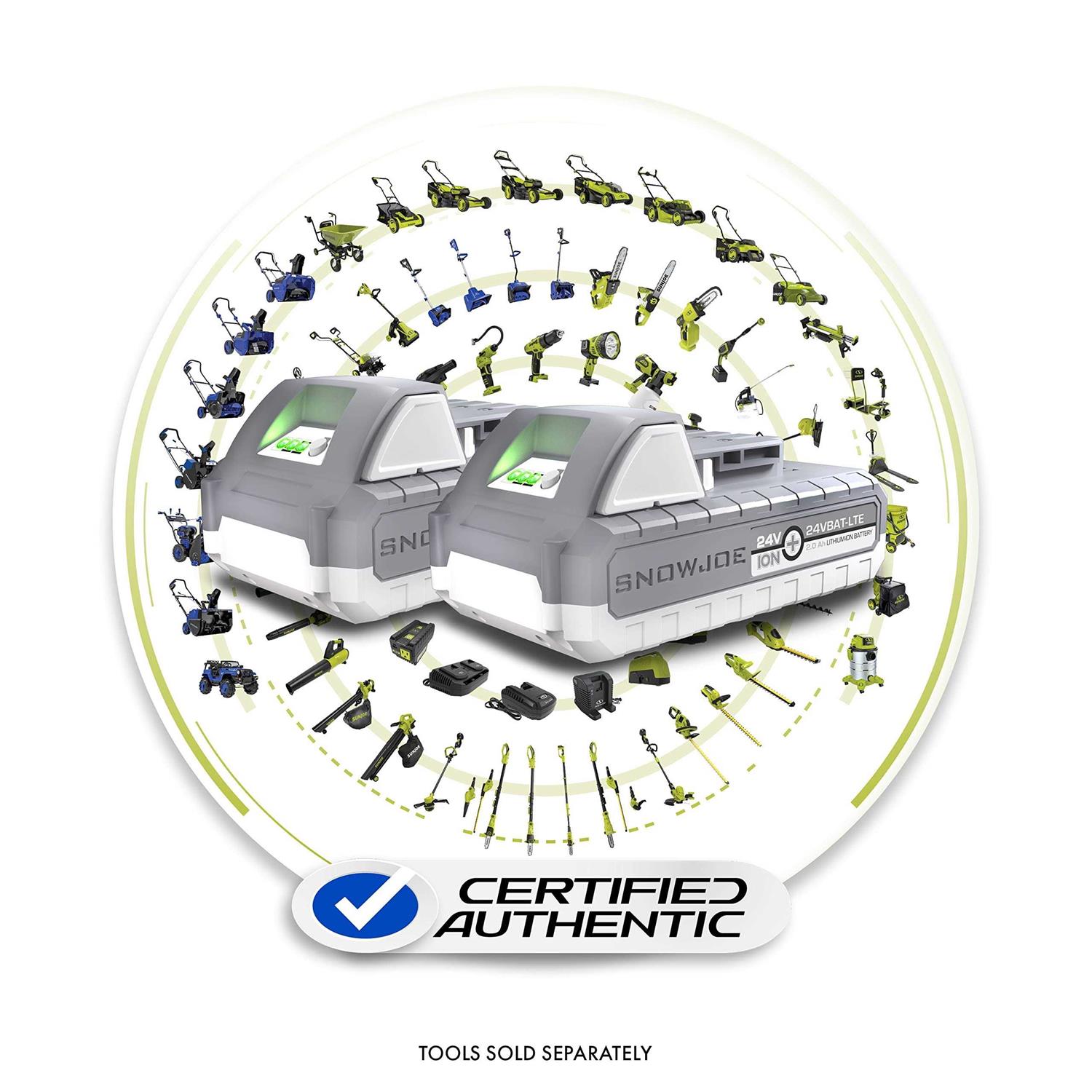 - [FOR USE]: With all Snow Joe and Sun Joe cordless 24V iON+ models.