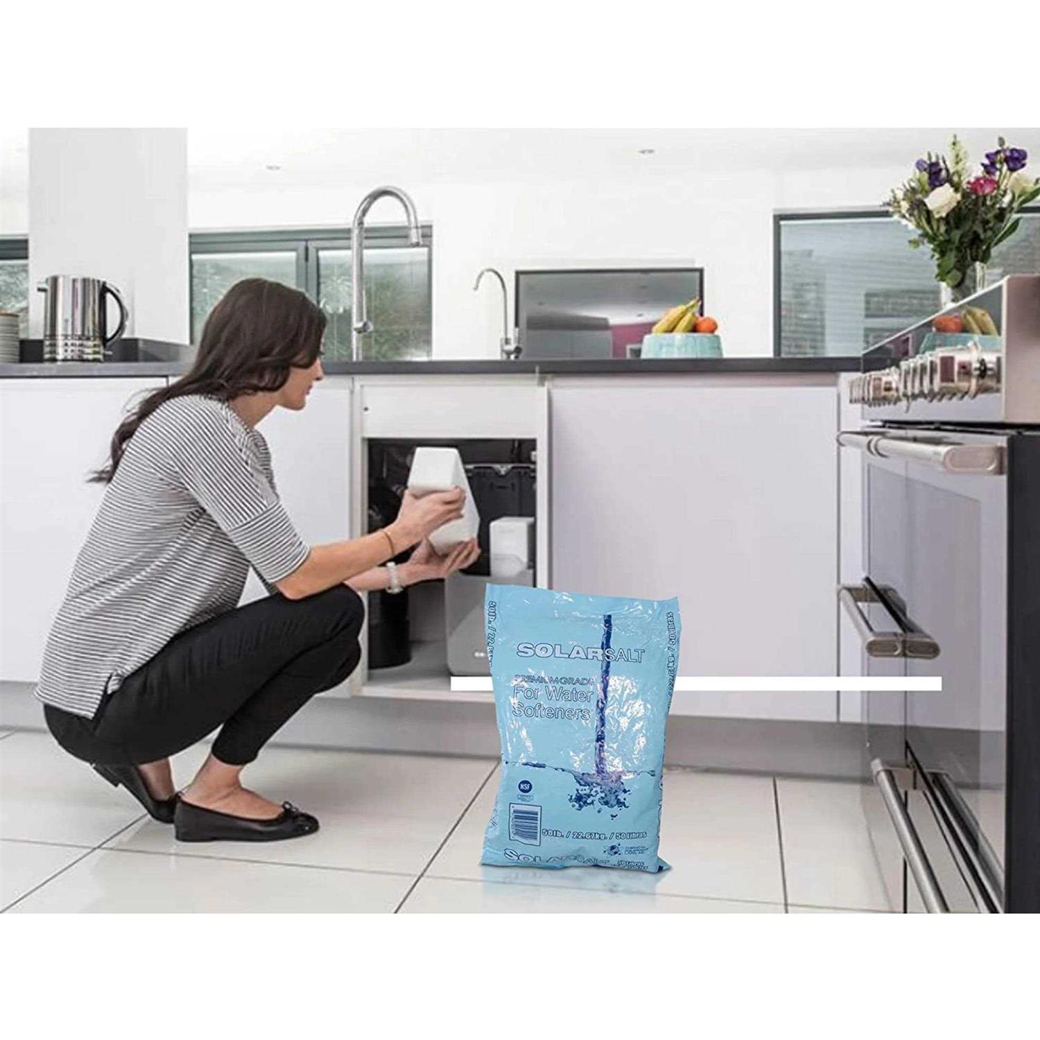Water Condtioning Solar Salt 50 lb Super clean, ultra high purity 99.6%. Evaporated naturally by sun & wind. Resists bridging and mushing in tank. Minimizes Brine accumulation in tank. Made naturally with sun, wind and time Solar salt water softener crystals are a 99.6% pure and a natural choice for treating your hard water It’s a great way to put nature to work softening your hard water. Solar Naturals Water Softener Salt Crystals have a white, opaque appearance and are recommended for use in all water softeners.