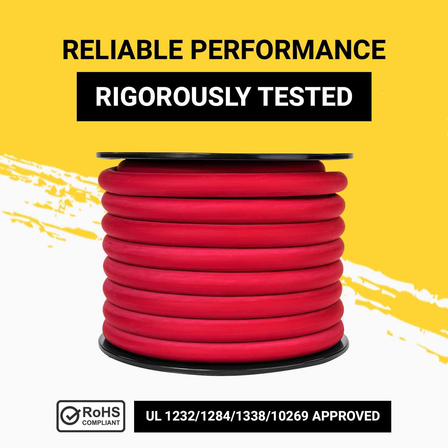 Heavy Duty – Rated for up to 600 volts and ready for work in the toughest conditions, withstanding temperatures from -58°F to +221°F, these cables are truly prepared for whatever you throw at them Premium Casing – Our cables feature an ultra-flexible EPDM jacket that is resistant to heat, abrasion, tear, moisture & oil, with paper separators for ease of stripping when making your own cables A Multitude of Uses: Great automotive cable replacements for any type of motorized vehicle, from trucks and cars to motorcycles and motorhomes, RVs, campers, boats, and golf carts; Ideal for DC applications that involve high-voltage batteries where pure copper is recommended Giving Power to The People: Helping people arm themselves with the right tools and accessories, Spartan Power manufactures ultra-high quality, Made in the USA battery cables every day in Reno, Nevada; Trusted by professionals, enthusiasts, and DIYers everywhere Perfect for DIY enthusiasts and craft-oriented people, our bulk cables are here to provide premium materials when it comes to building your own battery cables. You can now buy Spartan Power bulk battery cable by the foot in lengths of 25 feet, 50 feet, & 100 feet in gauges of 4 AWG, 2 AWG, 1/0, 2/0 and 4/0 cable. Proudly made in the USA. Try a set and see the difference!”