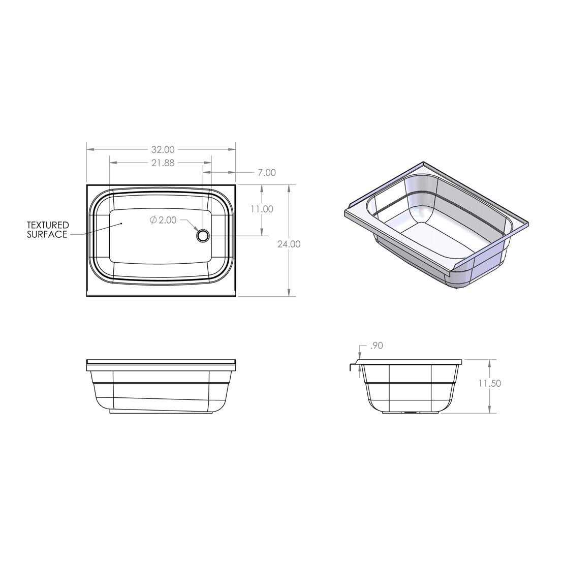 Specialty Recreation BT2432WR Tub 24 x 32 RH White