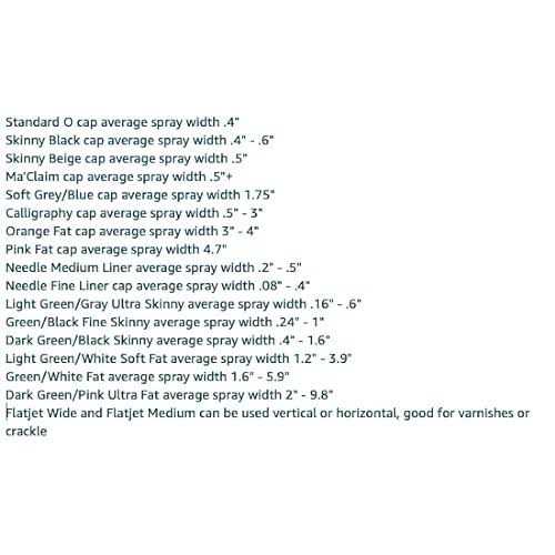 - These caps can be interchanged to get the right spray width for your artwork.