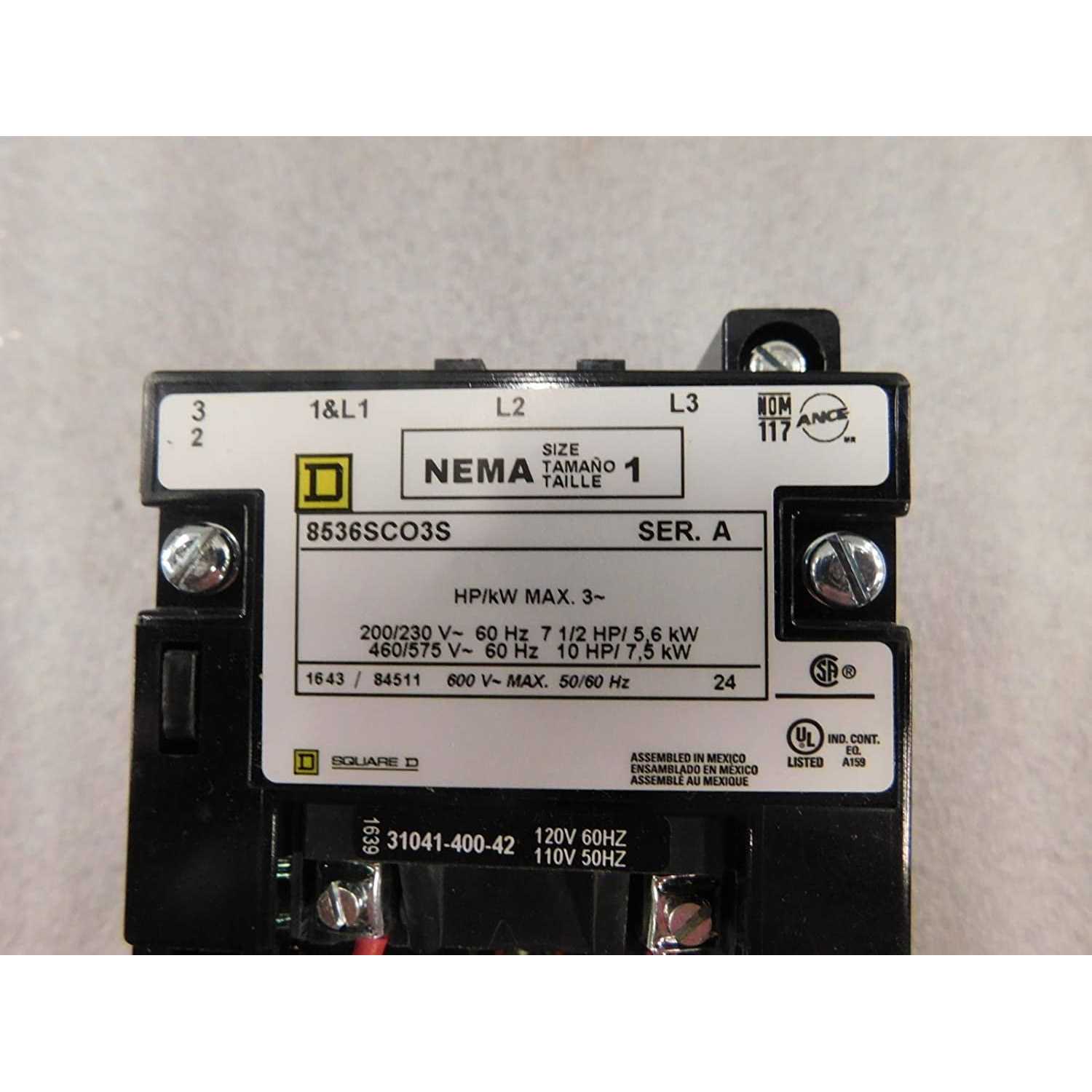 Product Overview The 8536SCO3V02S is a 3-phase 3-pole 10HP Magnetic Motor Starter used for full voltage starting and stopping AC squirrel cage motors. Motor overload protection is provided by melting alloy type thermal overload relays. A normally open holding circuit contact for three wire control is provided on all contactors as standard. The starter is provided with a melting alloy thermal overload relay as standard. The size-7 starter is provided with solid state motor logic which has selectable trip class-10/20, ground fault detection and communication capabilities for future enhancement. The solid state overload relay is ambient insensitive and features phase loss, phase unbalance and over-current protection.