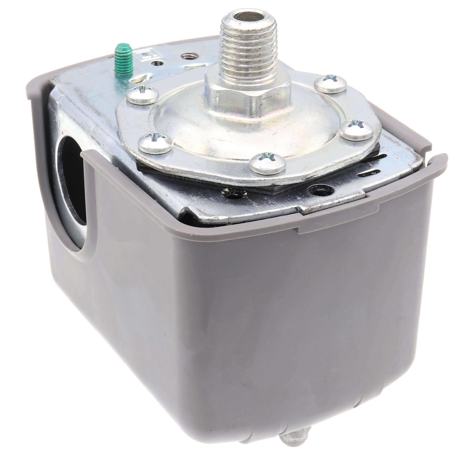 This product is part of the Nema Pressure Switches range, an offer of air compressor switches. This air compressor switch has 2 normally closed, snap action, DPST-DB (double pole single throw, double break) form YY contacts and off at 175psi pressure setting value. The pressure switch with a pressure sensor size of 200psi, an adjustable range on rising pressure of 100psi to 200psi and approximate fixed differential of 40psi. It is furnished with screw clamp terminals for electrical connection and 0.25inch NPT external for fluid connection. This low HP switch has a diaphragm actuator which can be operated from any position and fixed differential scale for internal settings. The enclosure is made of polypropylene. It is available in size of 2.78inch (W) x 3.76inch (D) x 3.92inch (H) and weighs 1lb. It is suitable for pressure controlling or monitoring of water pumps, compressors, agricultural/irrigation water systems, moulding presses, injection moulders, grinding machines, machining centres, complex and special machines. It is an IP20 and NEMA 1 rated product. This product is certified by CE, CSA and UL. Meets UL 508 standards. Every pressure switch has two operating points, one on rising pressure and one of falling pressure. The operating point on rising pressure is referred to as the TRIP POINT or cut out for pumps and compressors. Power pressure switch rated for the direct control of motors in compressor applications. Rugged, robust construction provides a long life and years of uninterrupted, worry-free service. Electromechanical switch to monitor and control pressure conditions for industrial and end-users applications.