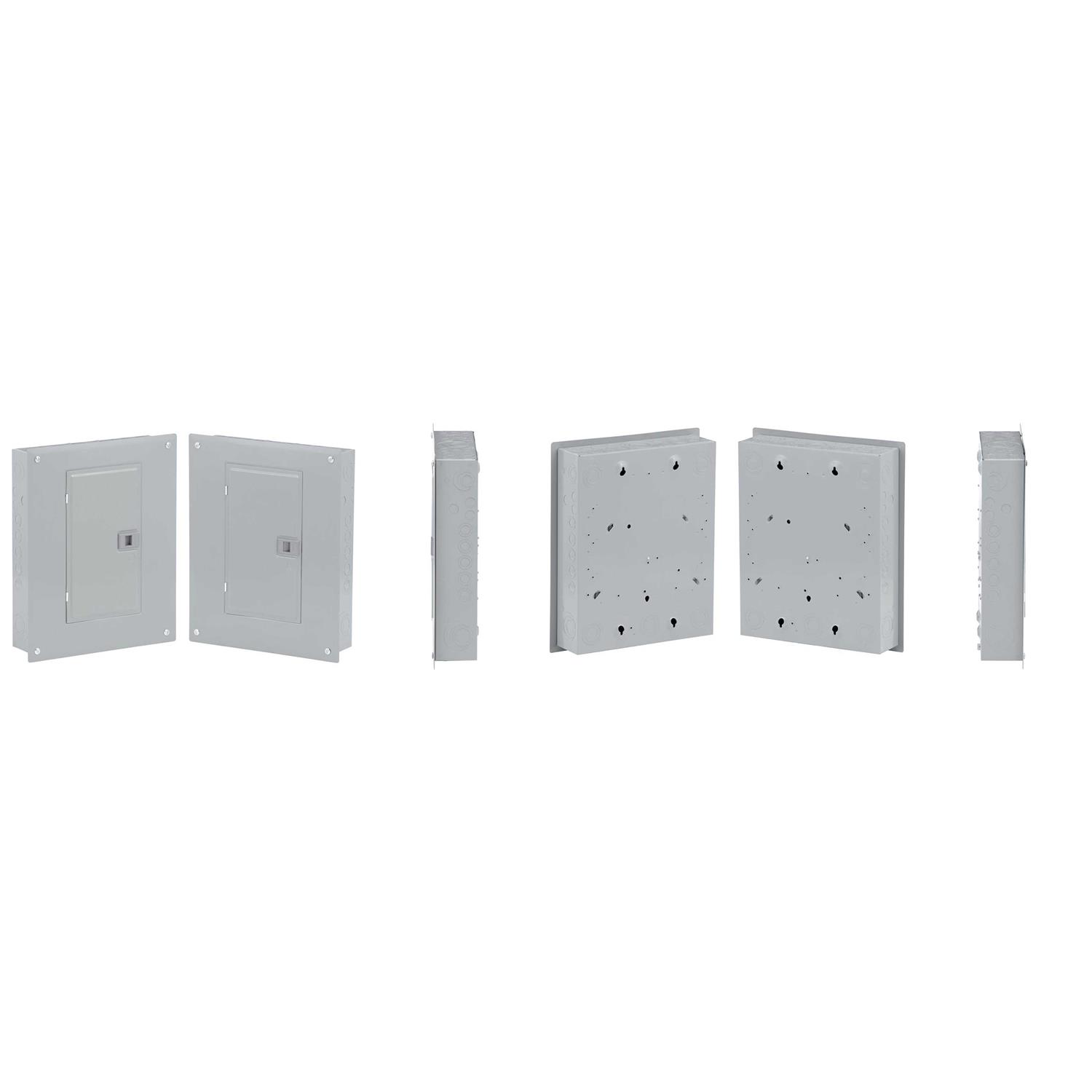 - Includes a combination flush/surface cover and is convertible to main breaker load center with a QOM1 main breaker (sold separately)