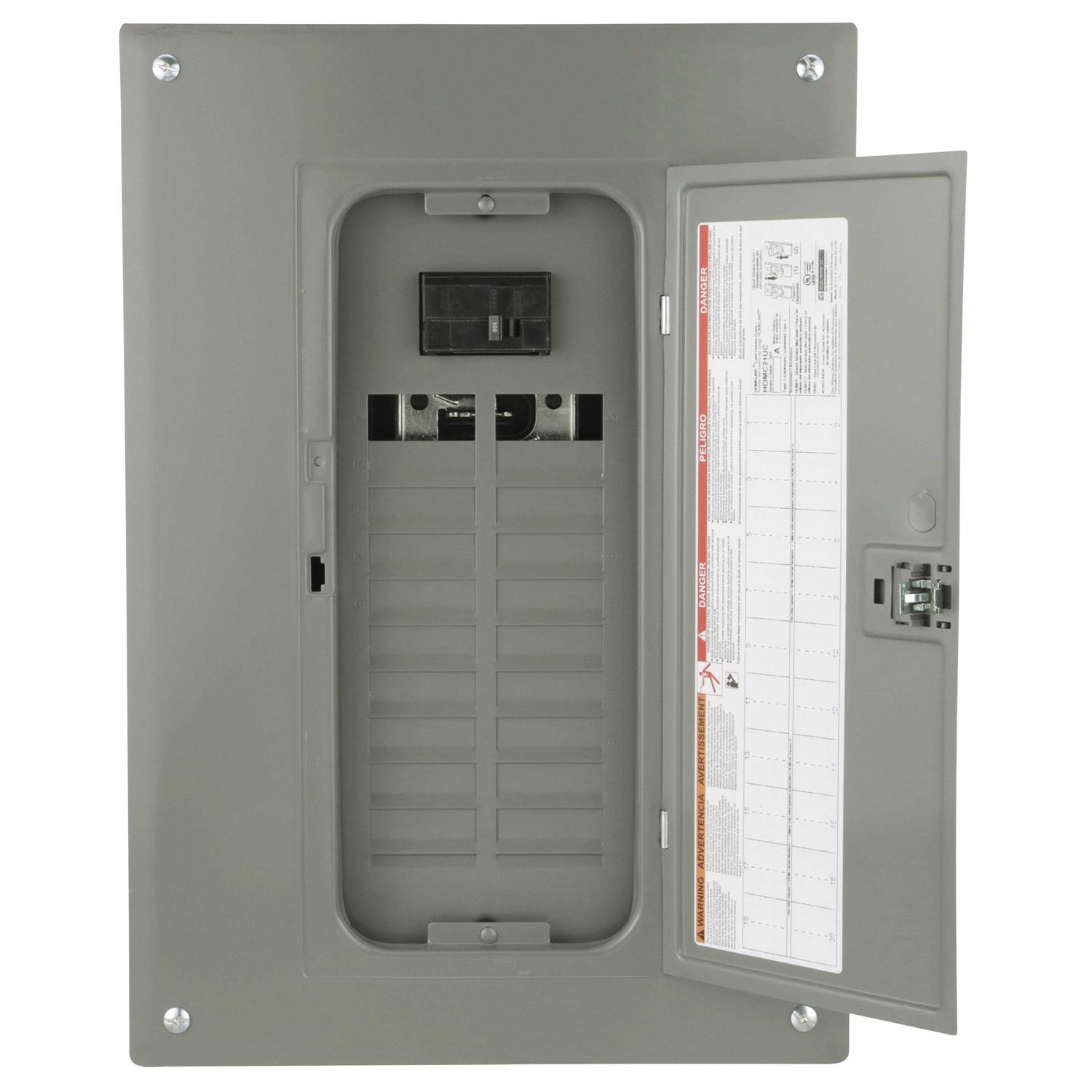The Square D by Schneider Electric Homeline Value Pack 100 amp 20-Space 40-Circuit Indoor Convertible Main Breaker Load Center for Plug-on Neutral breakers includes the cover, a selection of breakers and is UL listed for residential and commercial power distribution. This load center is built with a plated, aluminum bus bar that is tested and listed only for Homeline circuit breakers. Homeline load centers are designed for the value-minded contractors, remodelers, builders and homeowners. Homeline load centers are engineered for fast installation and wire savings.