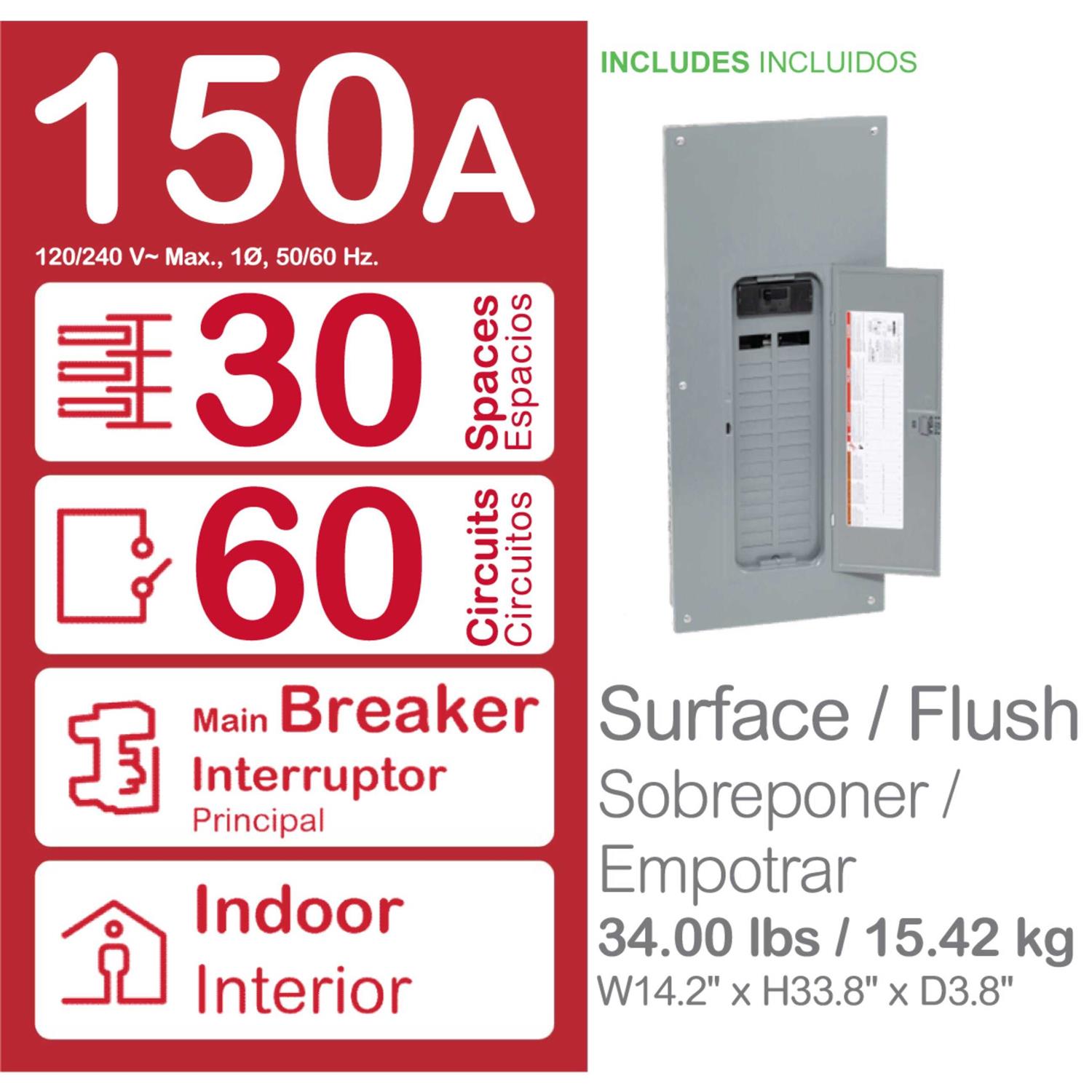 Square D Homeline 150-Amp 30-Spaces 60-Circuit Main Breaker Plug-On Neutral Load Center (Value Pack) HOM3060M150PCVP.