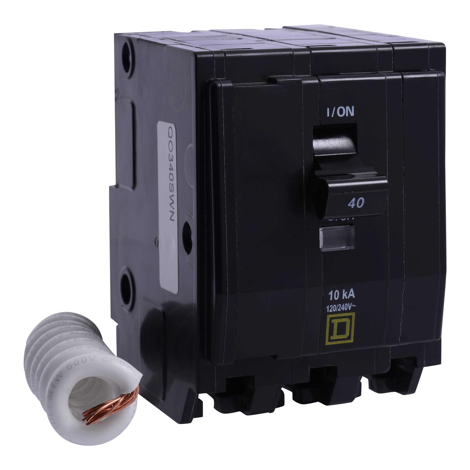 QO and QOB one, two and three pole thermal magnetic circuit breakers provide overcurrent protection and switching on ac and dc systems. These circuit breakers have an over center, trip-free toggle mechanism with quick-make, quick break action and positive handle indication. They also have VisiTrip trip indication, which provides a visual indication that the circuit breaker has tripped and interrupted the circuit. This QO miniature breaker is rated as 50 A, 120/240 V, and 3 pole. This unit provides 10 kA breaking capacity and plug in mounting. A full line of factory installed accessories is also available such auxiliary switches, alarm switches, and shunt trips. This unit has a factory installed switch neutral. QO breakers use a compact 3/4 inch width design for small system footprint. QO circuit breakers are UL Listed under UL File E84967 and are CSA Certified under CSA Master Contract 153555