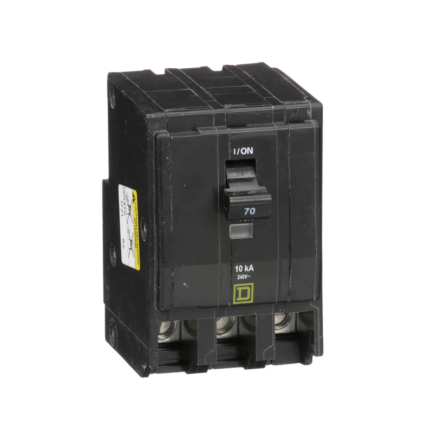 It has interrupt rating of 10 kilo-Amps at 240 VAC and 5 kilo-Amps at 48 VDC. It accommodates copper or aluminum wire size of 8 – 2 AWG. It offers effective overload and short circuit protection for added safety. The 3-Phase circuit breaker measures 2.250 Inch x 2.910 Inch x 3.500 Inch and provides long-time instantaneous trip functions to perform efficiently. It is ideal for QO load centers NQ/NQOD panel boards/interiors and speed-D switchboard distribution panels. It features reliable box lug terminal and VISI trip indicator for convenience. Breaker requires three spaces and uses plug-on mounting to hold firmly. Circuit breaker is UL listed/CSA certified.